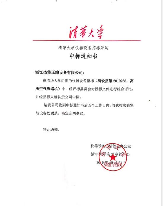 清華大學高壓空氣壓縮機采購項目中標,為辛麥恩今后的業(yè)務推廣、拓寬市場打下了堅實基礎。未來,辛麥恩將不斷科技創(chuàng)新,將為中國的教育科研提供最好的壓縮氣源。